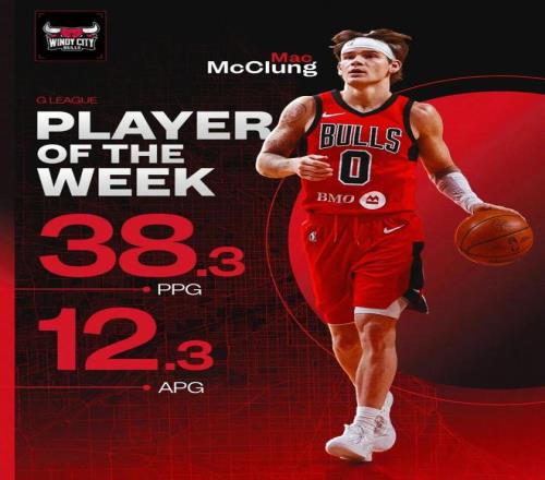 需要说的是,麦克朗的高能表现已经不止一场了,就在上周,他刚刚当选了G联赛的周最佳球员,当时他交出的数据是:3场比赛,场均38.3分12.1助攻,投篮命中率50%,三分命中率41%。